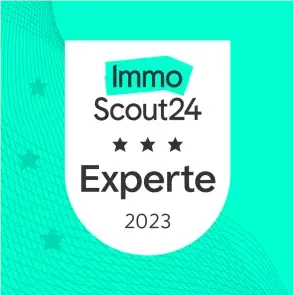 Geprüft und ausgezeichnet: Rimo ist offizieller staatlich geprüfter Immobilienmakler und wurde 2023 von ImmoScout24 als Experte für Service und Fachwissen geehrt.